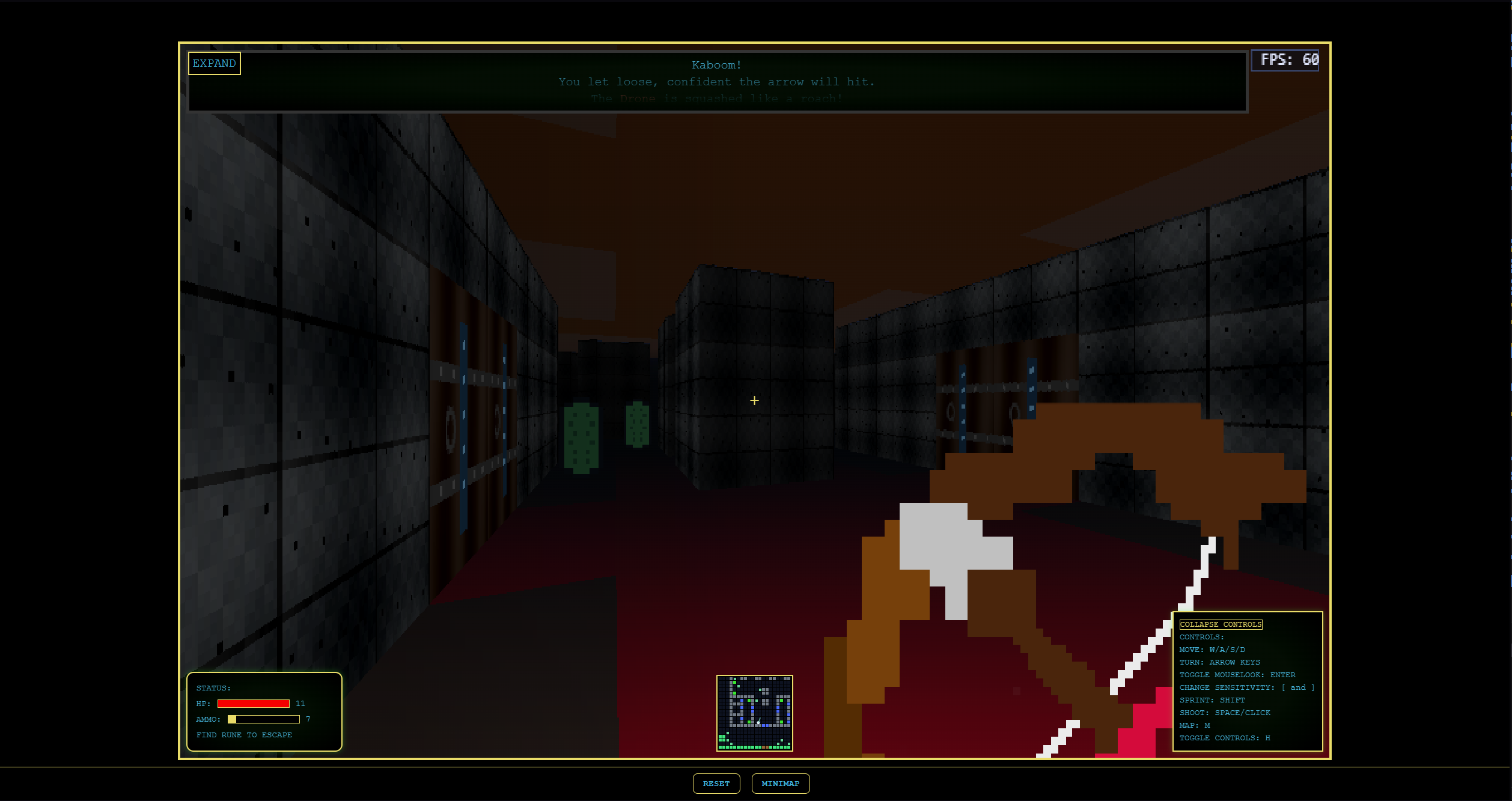 A small game similar to Wolfenstein 3D made entirely in JS. No WebGL just the HTML 5 canvas api.