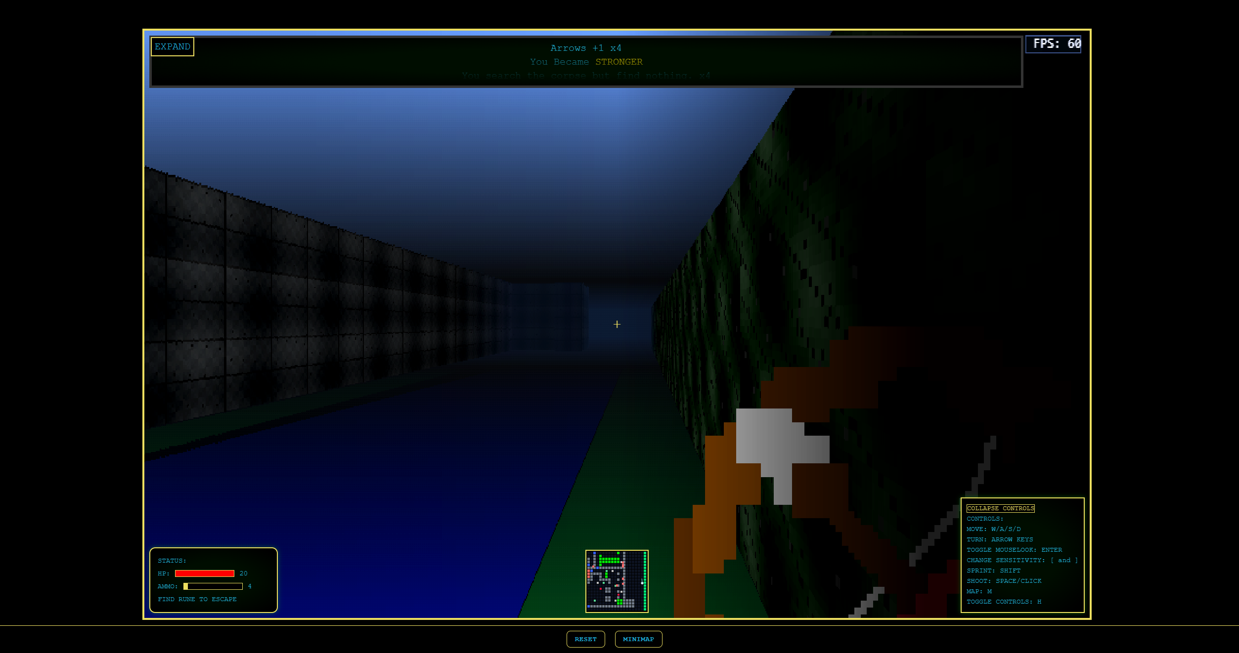 A small game similar to Wolfenstein 3D made entirely in JS. No WebGL just the HTML 5 canvas api.
