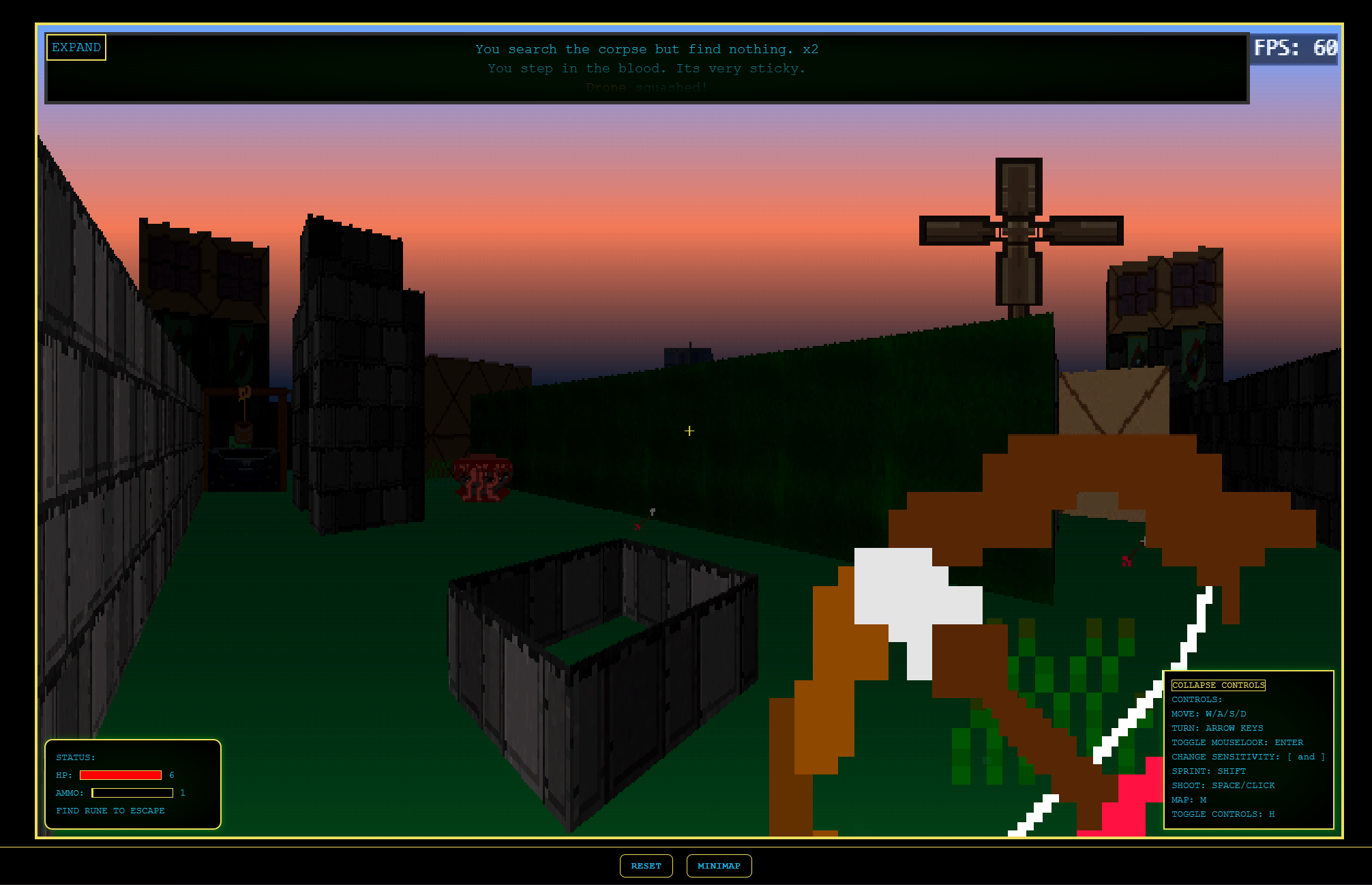 A small game similar to Wolfenstein 3D made entirely in JS. No WebGL just the HTML 5 canvas api.